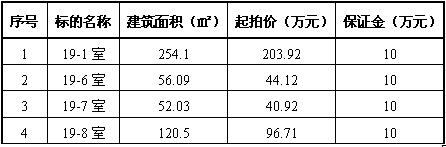 注:如上述房產(chǎn)在本次拍賣中全部成交,則在19層房產(chǎn)拍賣的買受人(包括19-2室、19-3室、19-5室的買受人)當(dāng)中進(jìn)行車位拍賣,車位拍賣的起拍價(jià)為24萬(wàn)元/個(gè),拍賣保證金5萬(wàn)元/個(gè),每套房產(chǎn)的買受人僅能成交一個(gè)車位。有意競(jìng)得多個(gè)拍賣標(biāo)的的競(jìng)買人應(yīng)當(dāng)繳納足額的保證金。標(biāo)的采用有保留價(jià)的增價(jià)拍賣方式,標(biāo)的交易所發(fā)生的全部費(fèi)用(包括房產(chǎn)買、賣雙方交易稅費(fèi)及未知欠費(fèi))由買受人承擔(dān)。