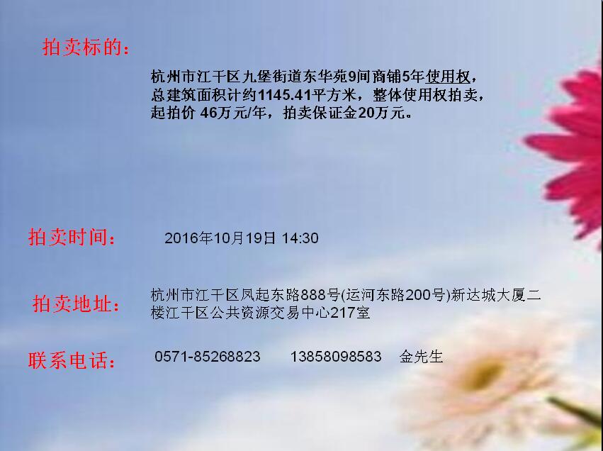 江干區(qū)九堡街道東華苑部分商鋪5年使用權(quán)轉(zhuǎn)讓拍賣(mài)