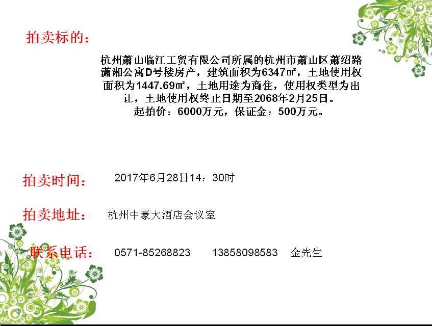 永盛拍賣熱線:0571-85268823 在線留言 | 收藏本站