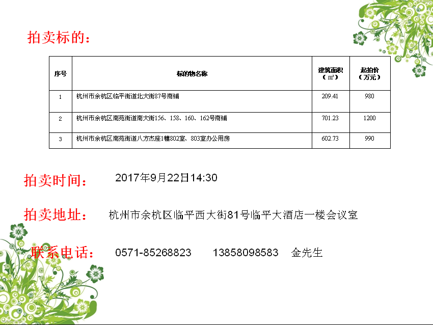 臨平商鋪及辦公用房拍賣