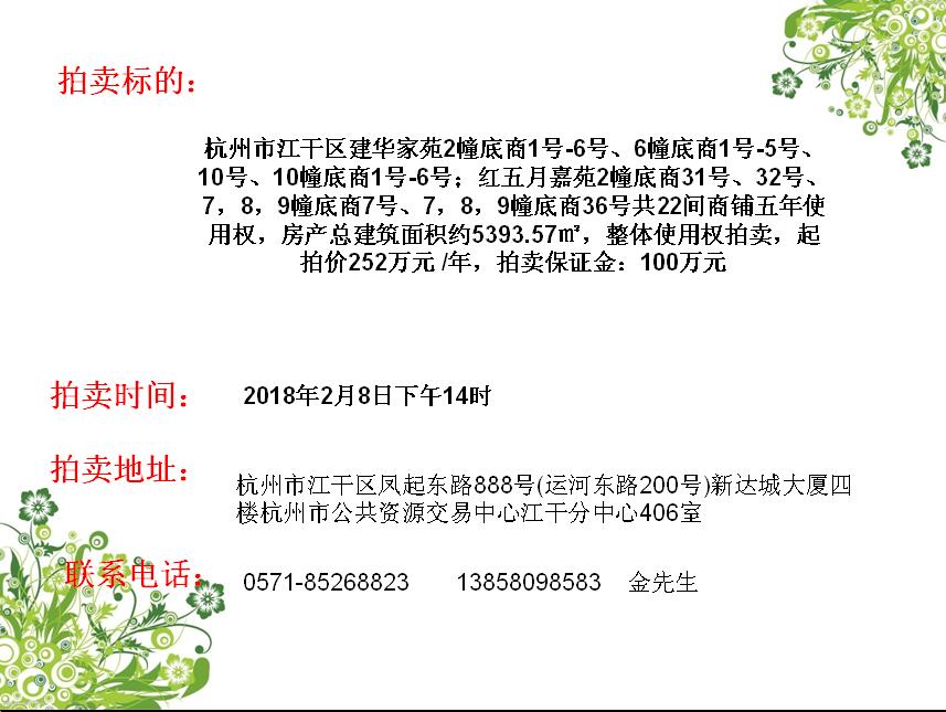 建華家苑、紅五月嘉苑共22間商鋪五年使用權(quán)拍賣
