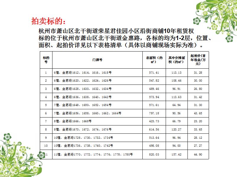 杭州市蕭山區(qū)北干街道榮星君佳園小區(qū)沿街商鋪10年租賃權