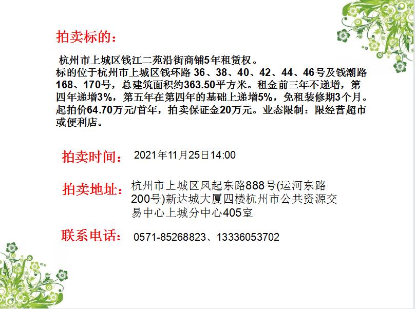 杭州市上城區(qū)錢江二苑沿街商鋪5年租賃權(quán)