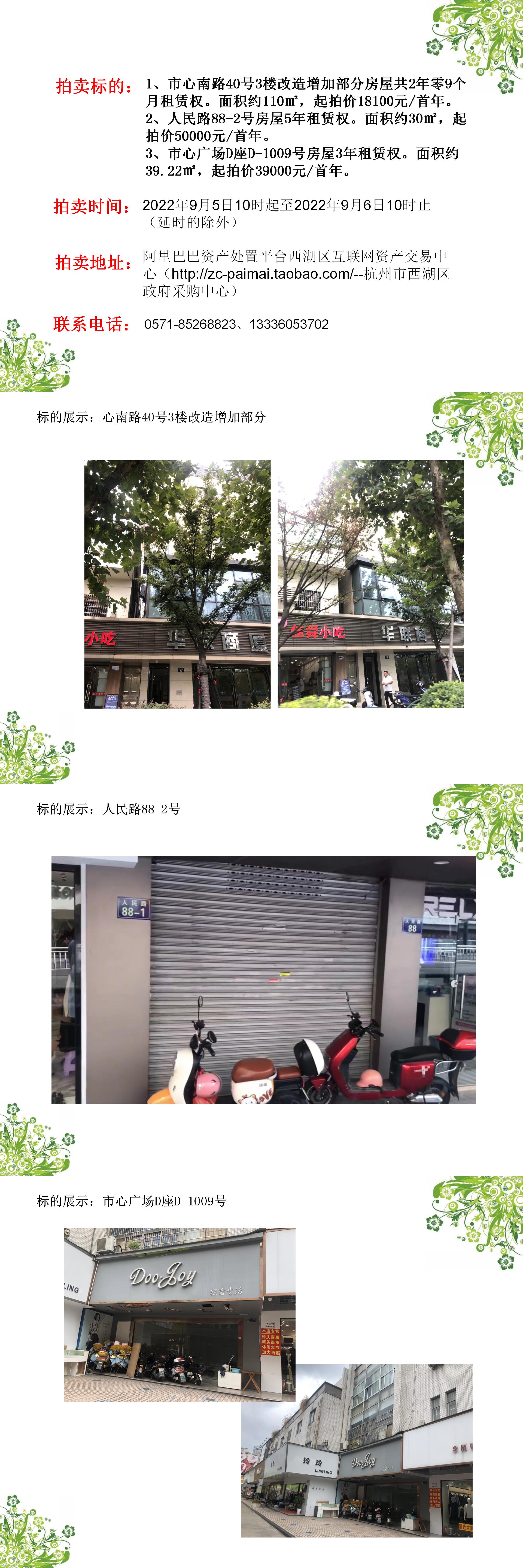 市心南路40號3樓改造增加部分等共3處房屋租賃權(quán)拍賣