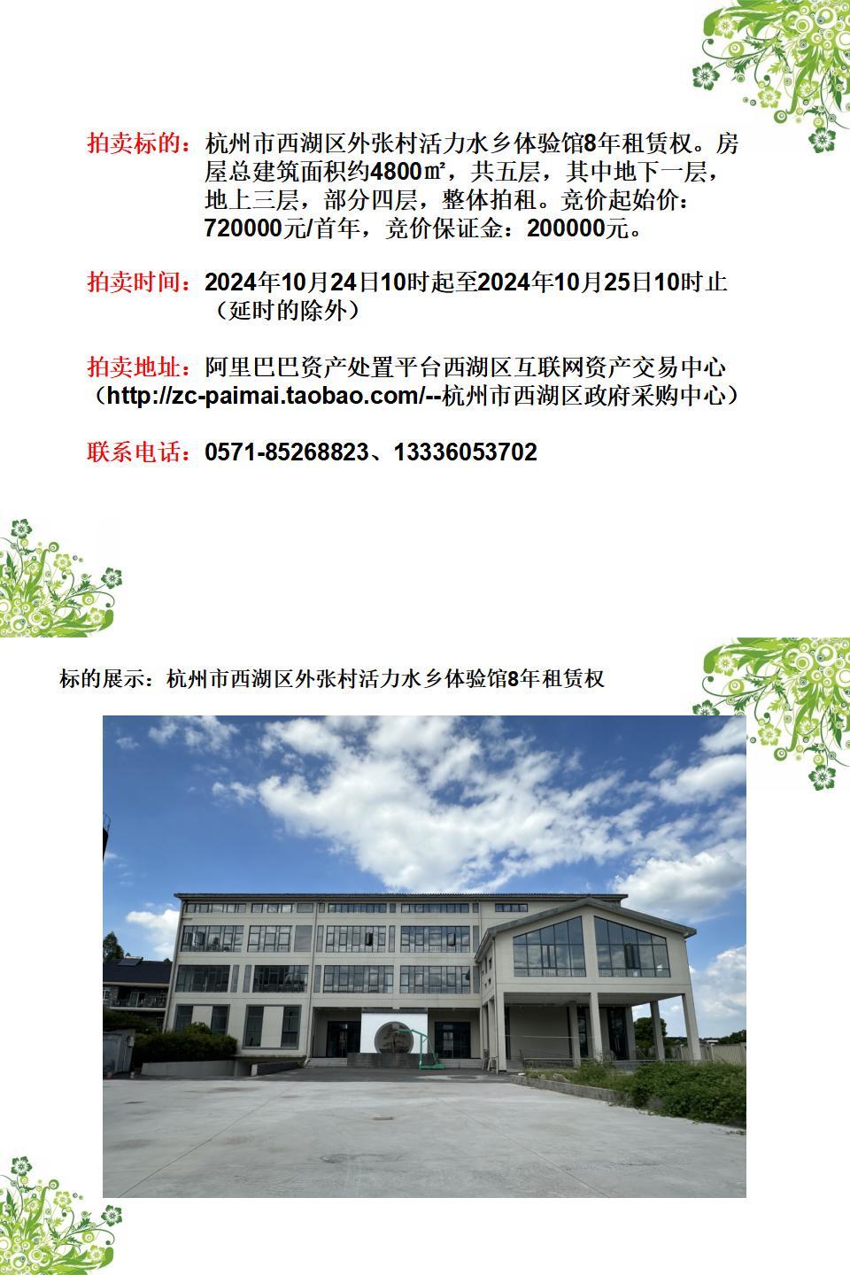 杭州市西湖區(qū)外張村活力水鄉(xiāng)體驗館8年租賃權(quán)