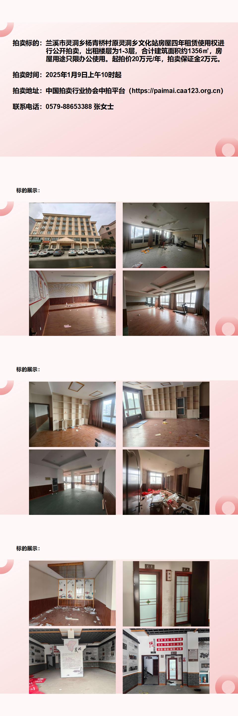 蘭溪市靈洞鄉(xiāng)楊青橋村原靈洞鄉(xiāng)文化站房屋四年租賃使用權(quán)