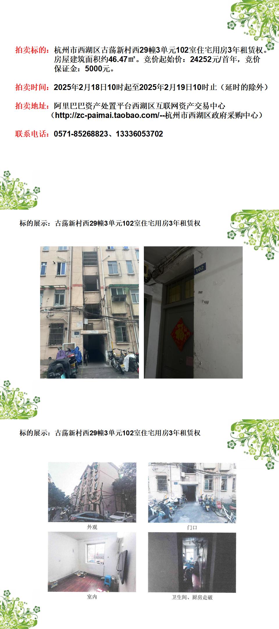 杭州市西湖區(qū)古蕩新村西29幢3單元102室住宅用房3年租賃權(quán)