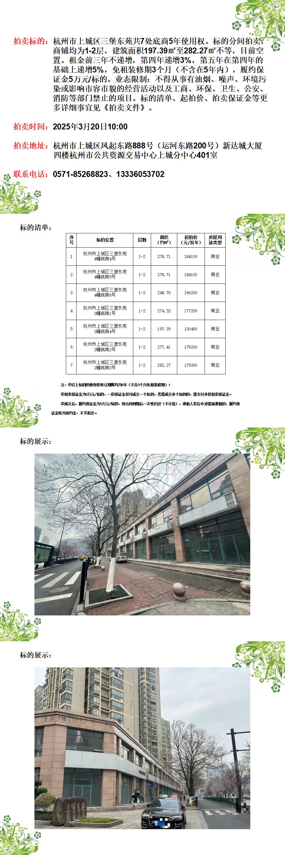 杭州市上城區(qū)三堡東苑共7處底商5年使用權(quán)