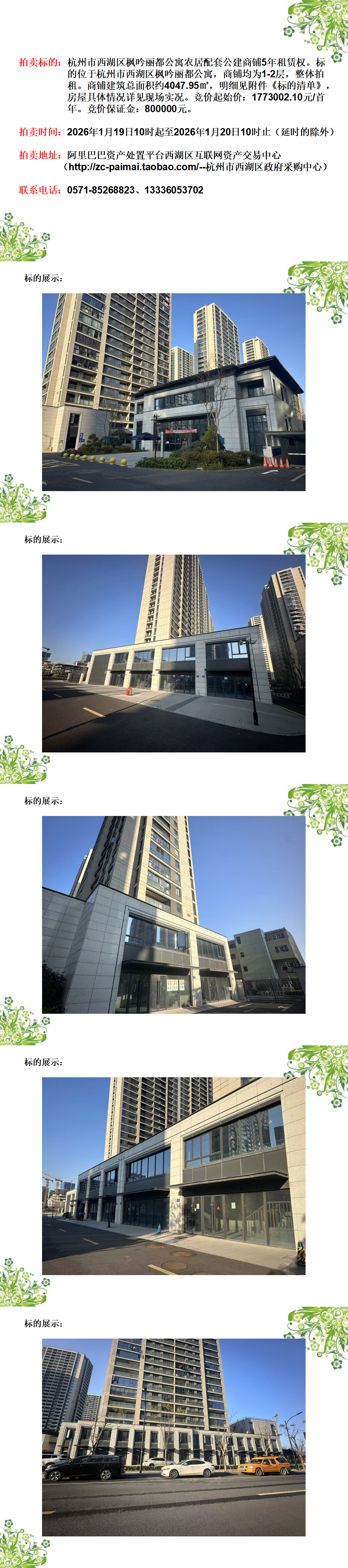 杭州市西湖區(qū)楓吟麗都公寓農(nóng)居配套公建商鋪5年租賃權(quán)