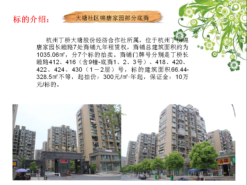 江干區(qū)丁蘭街道大塘社區(qū)錦唐家園部分底商9年租賃權(quán)拍賣