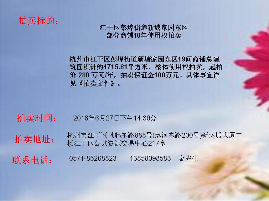 江干區(qū)彭埠街道新塘家園東區(qū)部分商鋪10年使用權(quán)拍賣