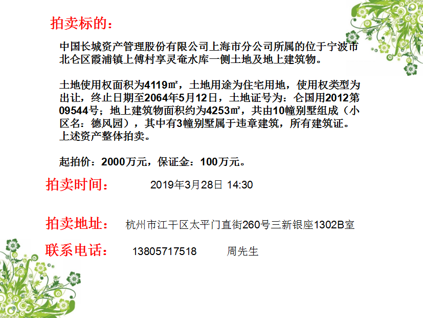 “寧波市北侖區(qū)霞浦鎮(zhèn)上傅村”土地使用權(quán)拍賣