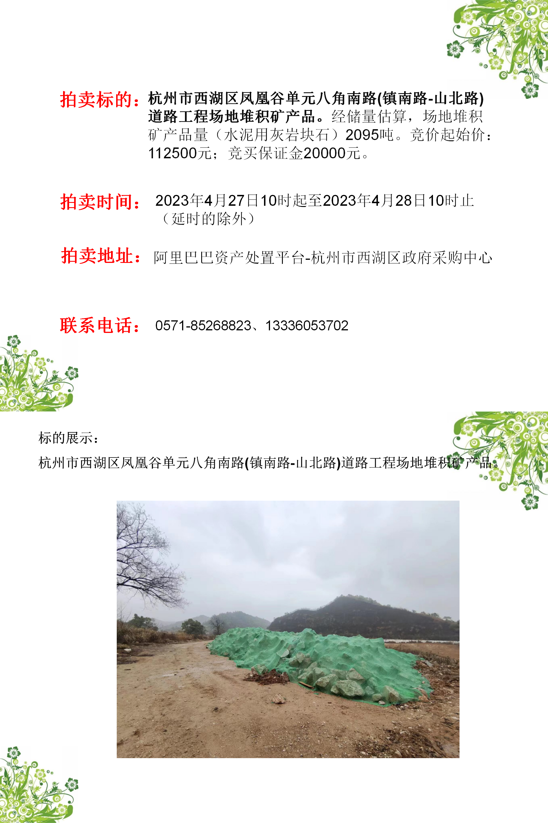 杭州市西湖區(qū)鳳凰谷單元八角南路(鎮(zhèn)南路-山北路)道路工程場(chǎng)地堆積礦產(chǎn)品