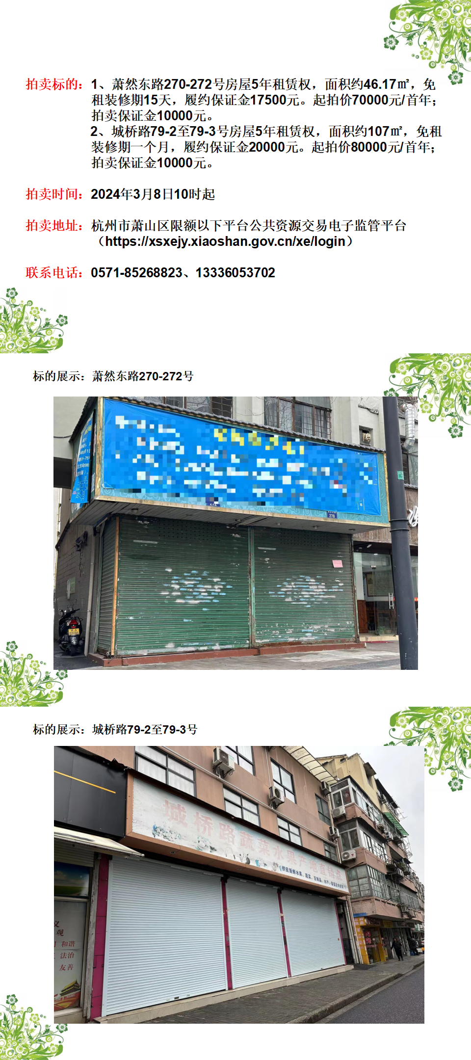 蕭山區(qū)蕭然東路270-272號等共2處房屋租賃權(quán)拍賣