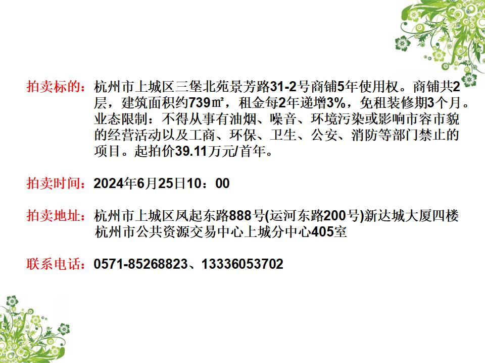 杭州市上城區(qū)三堡北苑景芳路31-2號(hào)商鋪5年使用權(quán)