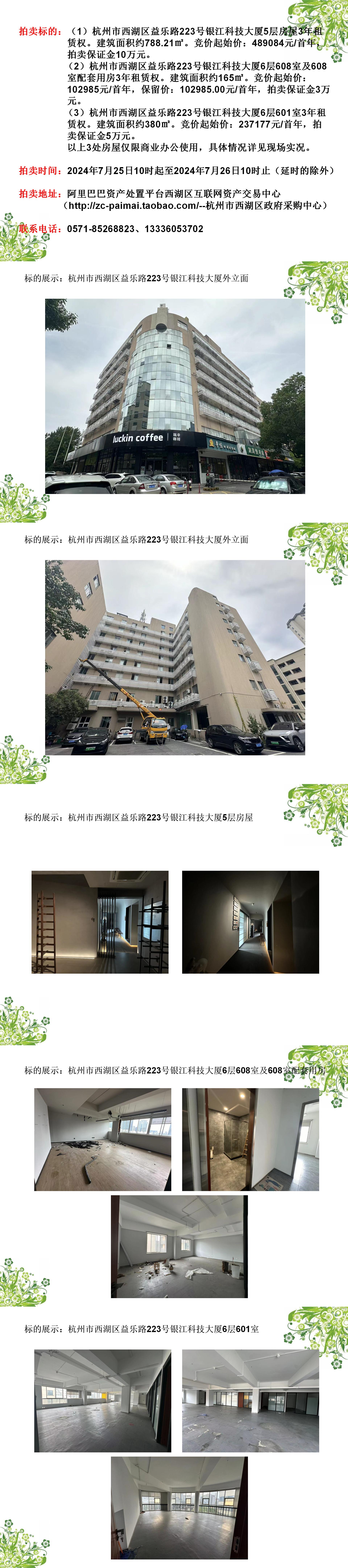 杭州市西湖區(qū)益樂路223號銀江科技大廈3處房產3年租賃權拍賣