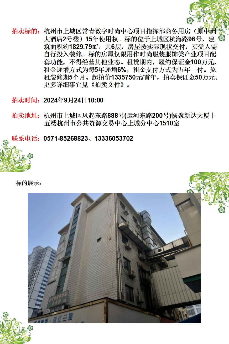 杭州市上城區(qū)常青數(shù)字時(shí)尚中心項(xiàng)目指揮部商務(wù)用房15年使用權(quán)