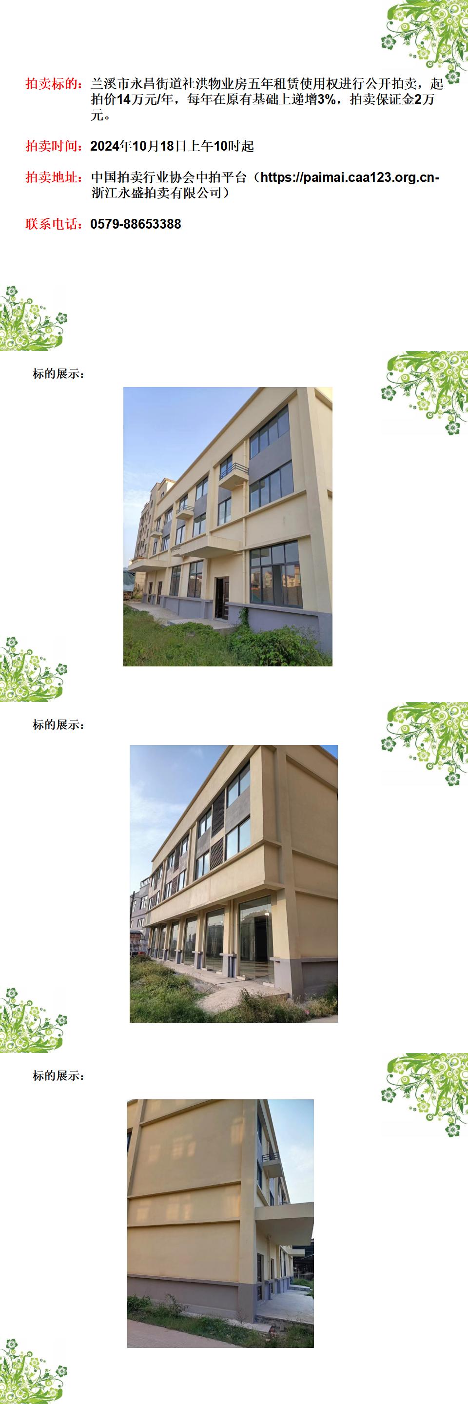 蘭溪市永昌街道社洪物業(yè)房五年租賃使用權(quán)