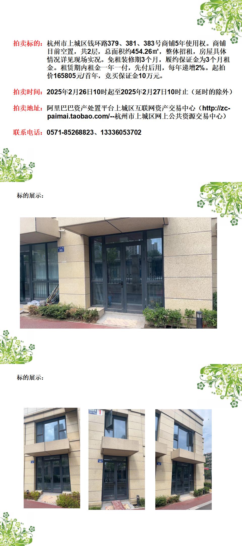 杭州市上城區(qū)錢環(huán)路379、381、383號商鋪5年使用權(quán)