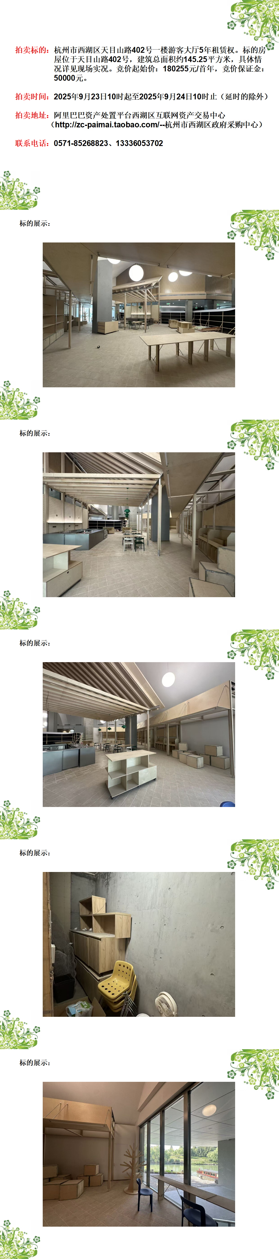 杭州市西湖區(qū)天目山路402號一樓游客大廳5年租賃權(quán)