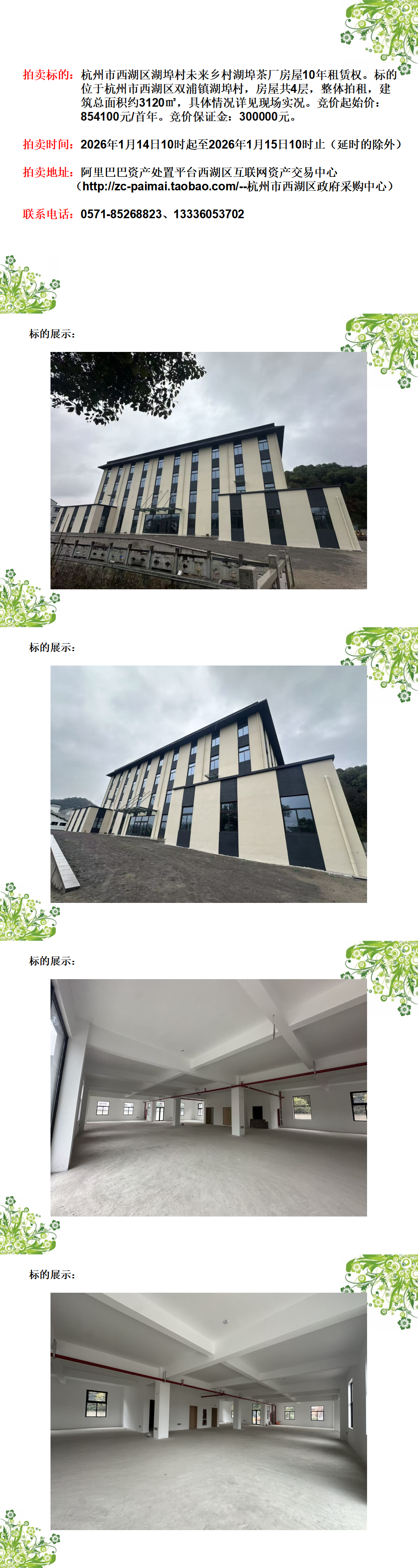 杭州市西湖區(qū)湖埠村未來(lái)鄉(xiāng)村湖埠茶廠房屋10年租賃權(quán)
